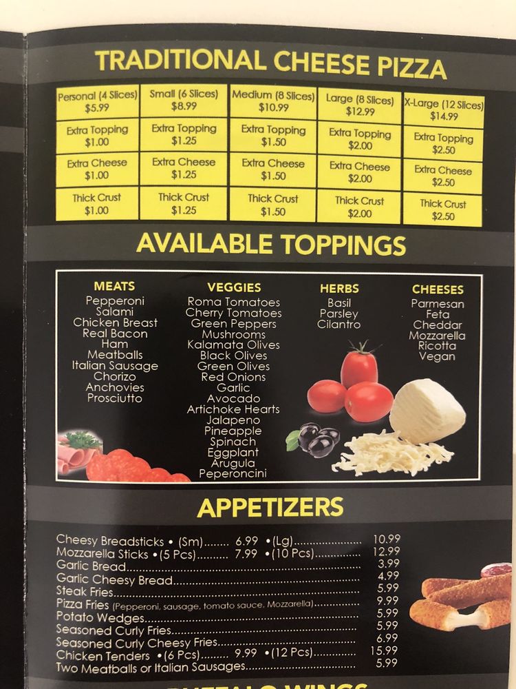 1 X large 2 topping pizza, 12 wings, 1 caesar salad & 1.2 Liter Soda.