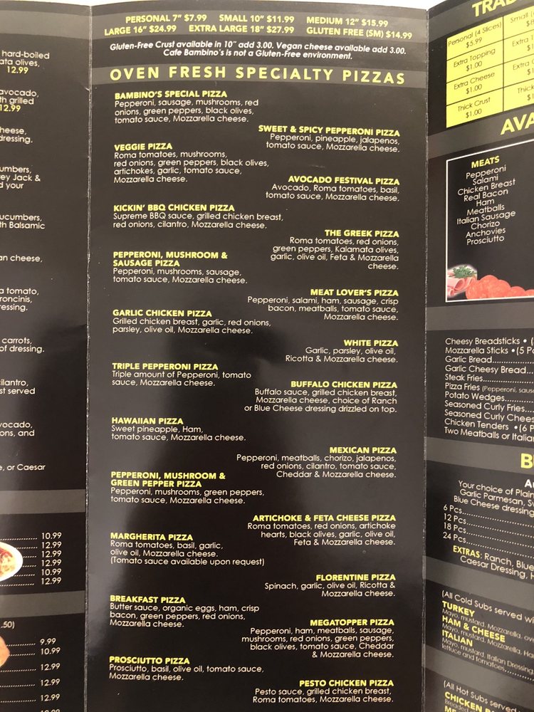 Cafe Bambino's Menu (2025 Update)