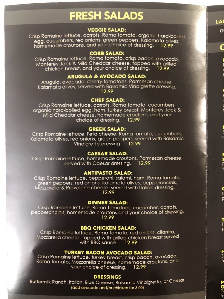 Crisp romaine lettuce, pepperoni, salami, ham, roma tomato, green pepper, red onions, kalamata olives, pepperoncinis, mozzarella & provolone cheese, served with Italian dressing.